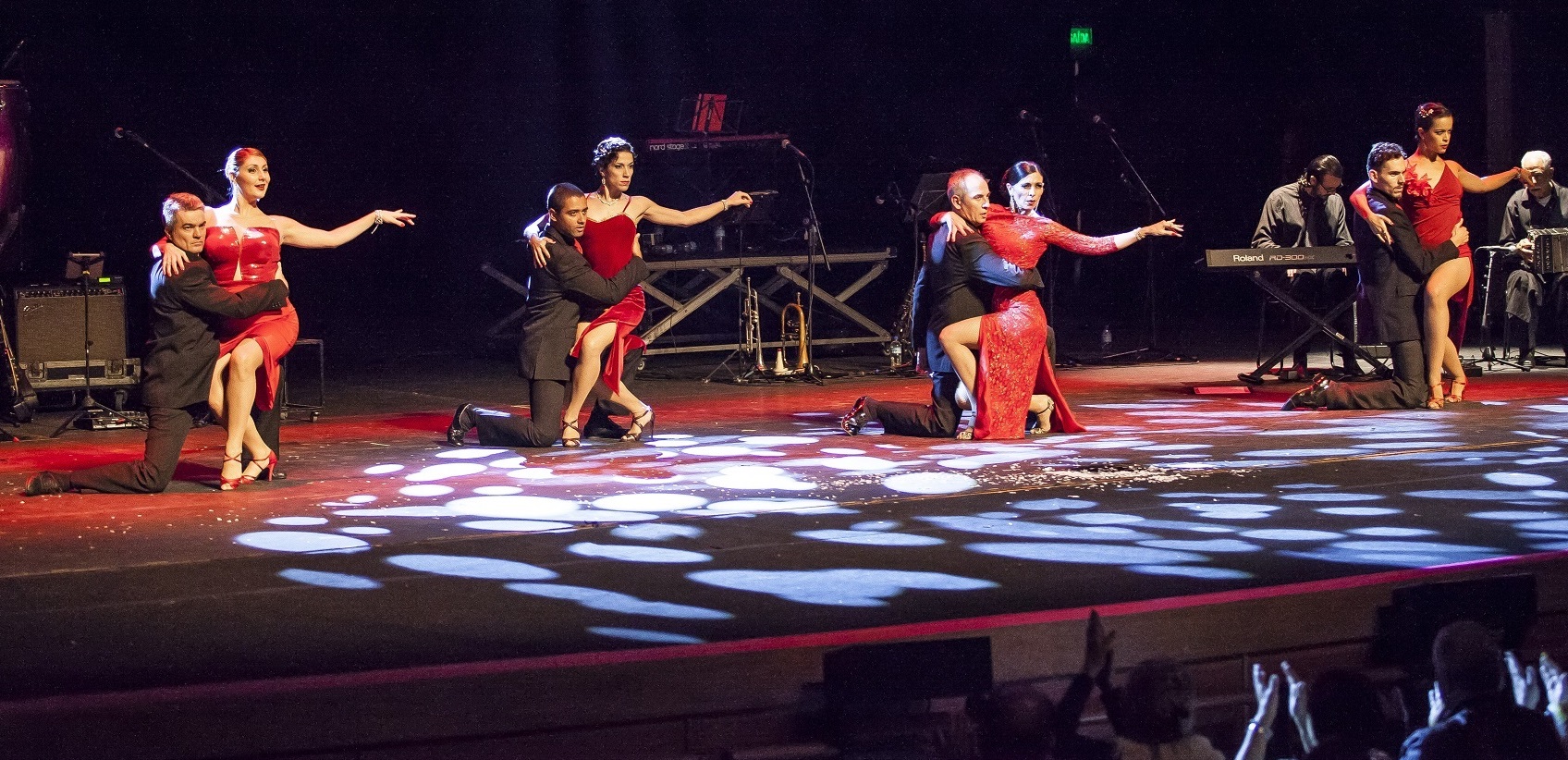 Nos espetáculos são apresentadas as mais destacadas formas e estilos do Tango, com todo seu charme e sensualidade, as músicas, a dança e o canto. Fazem parte do repertorio alguns dos mais destacados, tradicionais e reconhecidos tangos como “Caminito”, “El dia que me quieras”, “Por uma cabeza”. “La cumparsita”, “El choclo” e “Adios nonino” dentre outros.
